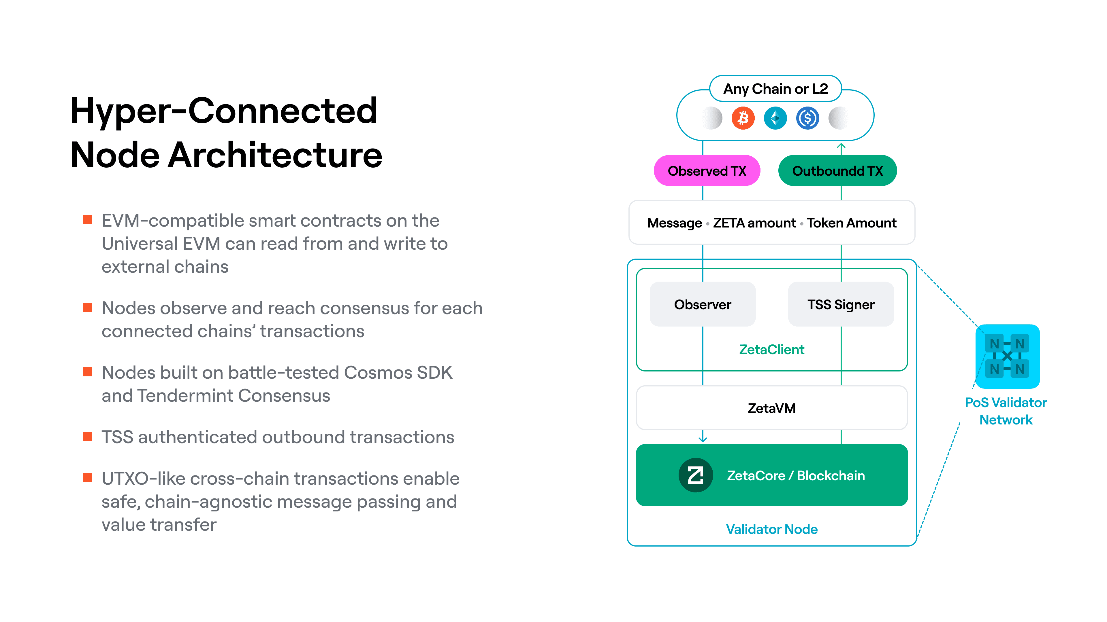 With its Universal EVM, ZetaChain is an L1 blockchain for chain abstraction. Build simple, secure, universal apps that span any chain from Ethereum and Cosmos to Bitcoin and beyond.