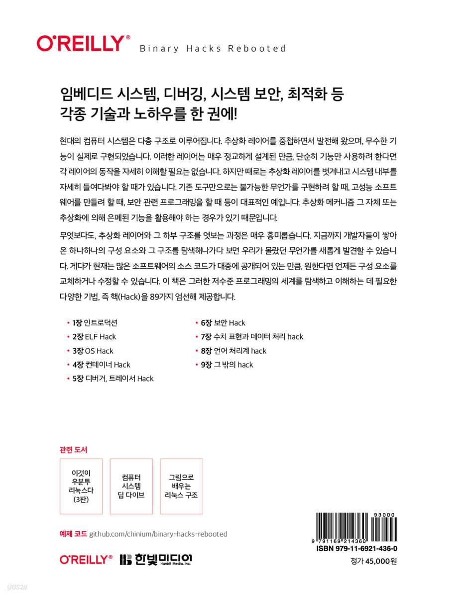 임베디드 개발자들은 어셈블리 수준에서의 조작을 해봤을 것이고, C언어를 사용해봤다면 라이브러리를 타고 들어가다 시스템 콜과 연관된 코드를 본 경험이 있을 것이다. 리눅스 자격증을 취득한 사람들이라면 OS, 커널, 파일, 프로세스 등 컴퓨터 구조와 명령어 사이의 관계에 익숙할 것이다. 보안 전공자라면 이진 파일을 다양한 방식으로 해석할 수 있다는 사실과 도구를 활용해서 디버깅/시뮬레이션을 할 수 있다는 것을 알테고, 애플리케이션 개발자들은 컨테이너와 하이퍼바이저를 이용한 오케스트레이션에 친숙할 것이다. 놀랍게도 앞서 말한 내용들 모두 이 책에서 언급되는 내용이다. 즉, 당신이 무엇을 상상하든 이 책은 그 이상을 다루고 있으리라.