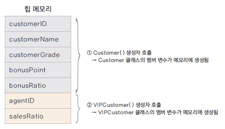 상속 관계에서 하위 클래스의 생성은 상위 클래스의 생성을 선행한다.