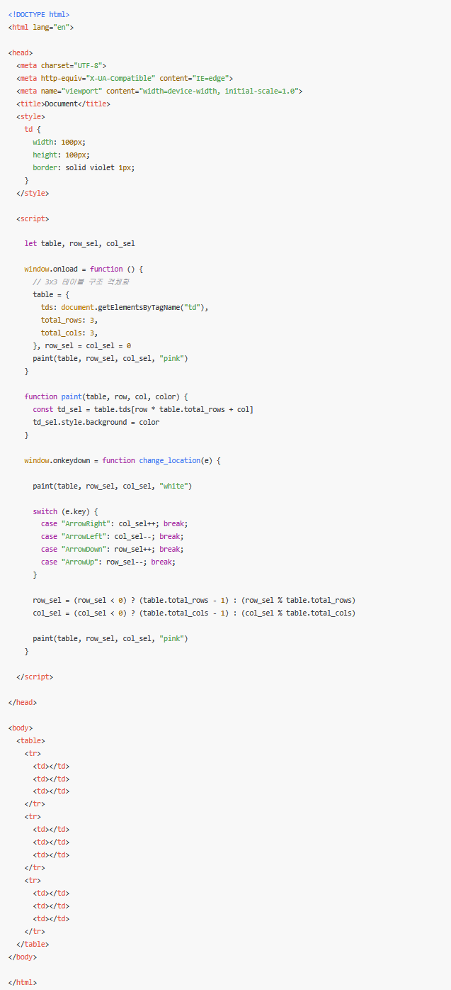 // 3x3 테이블 구조 객체화