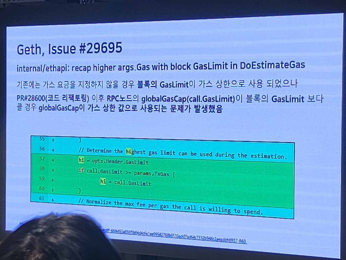 발표자분께서는 소소한 오픈 소스 기여의 의미를 청중들이 쉽게 이해할 수 있도록 '건물의 전구 하나 갈아 끼우는 것' 정도로 비유하셨지만, 적절한 비유가 아니라고 본다. 특히, geth, reth와 같이 사용하는 클라이언트의 수가 많다면 더욱 그렇다. 복제되는 제품의 파급력이 어마어마하기 때문에, 이륙 직전의 비행기를 수리하는 정도 아닐까? 비록 실제 기여한 부분이 핵심적인 내용은 아니었지만 잠재된 영향력은 크다고 생각한다.