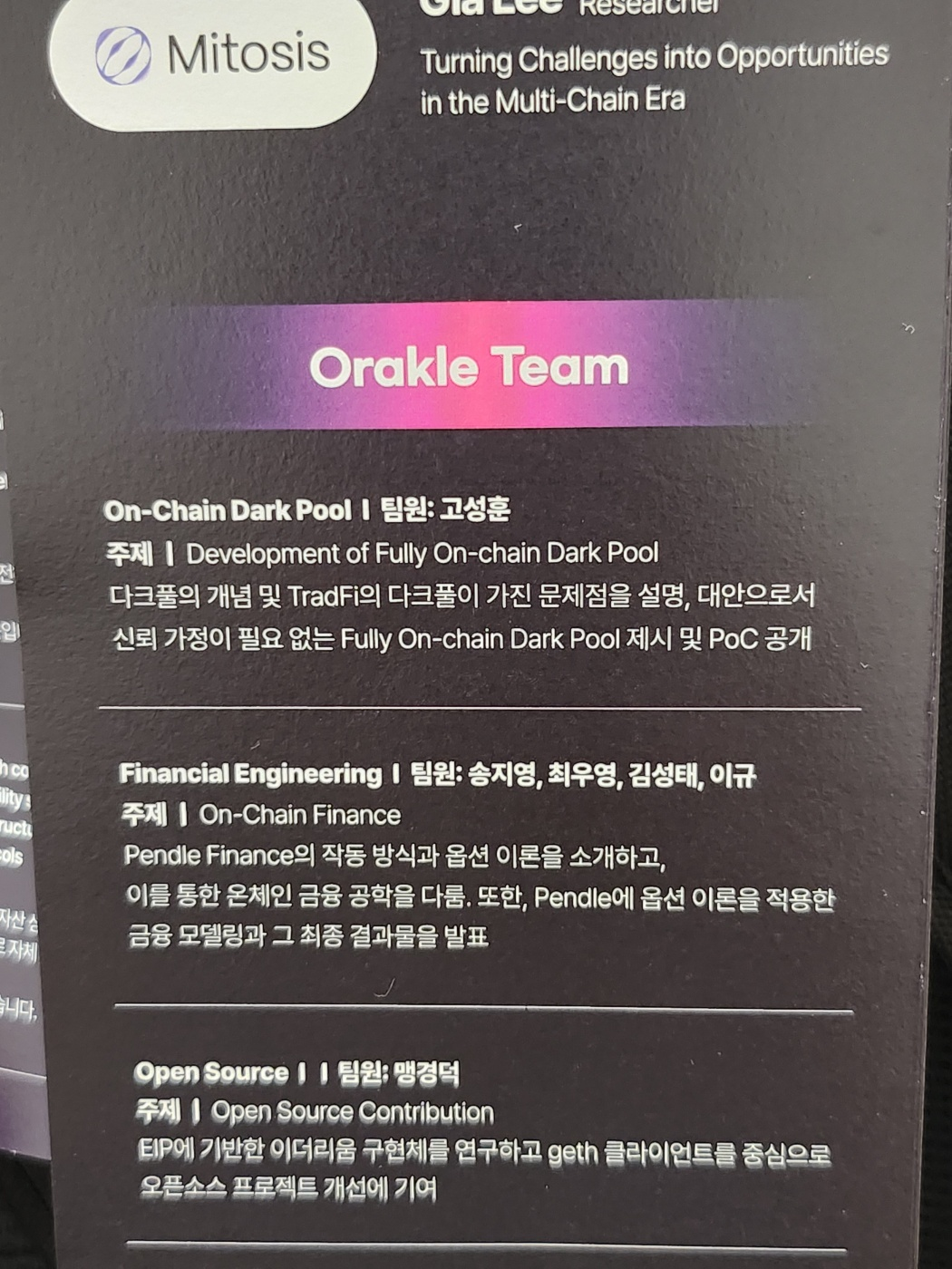 발표자분께서도 언급하셨지만 이미 Renegade가 성능도 좋고, fine tuning된 dark pool을 선보인 상태다. 하지만 시도 자체만으로도, 그리고 현재 프로토타입을 완성한 상태라는 사실만으로도 고무적인 성과라 생각한다.