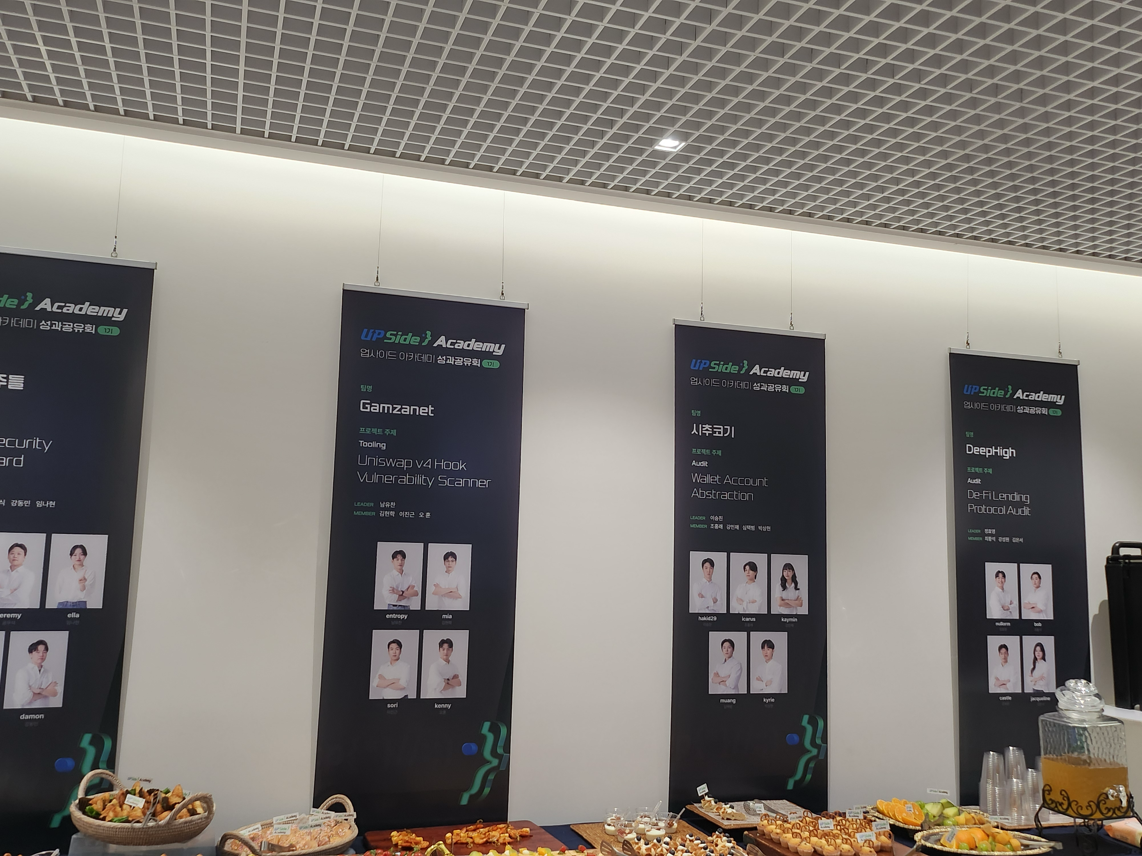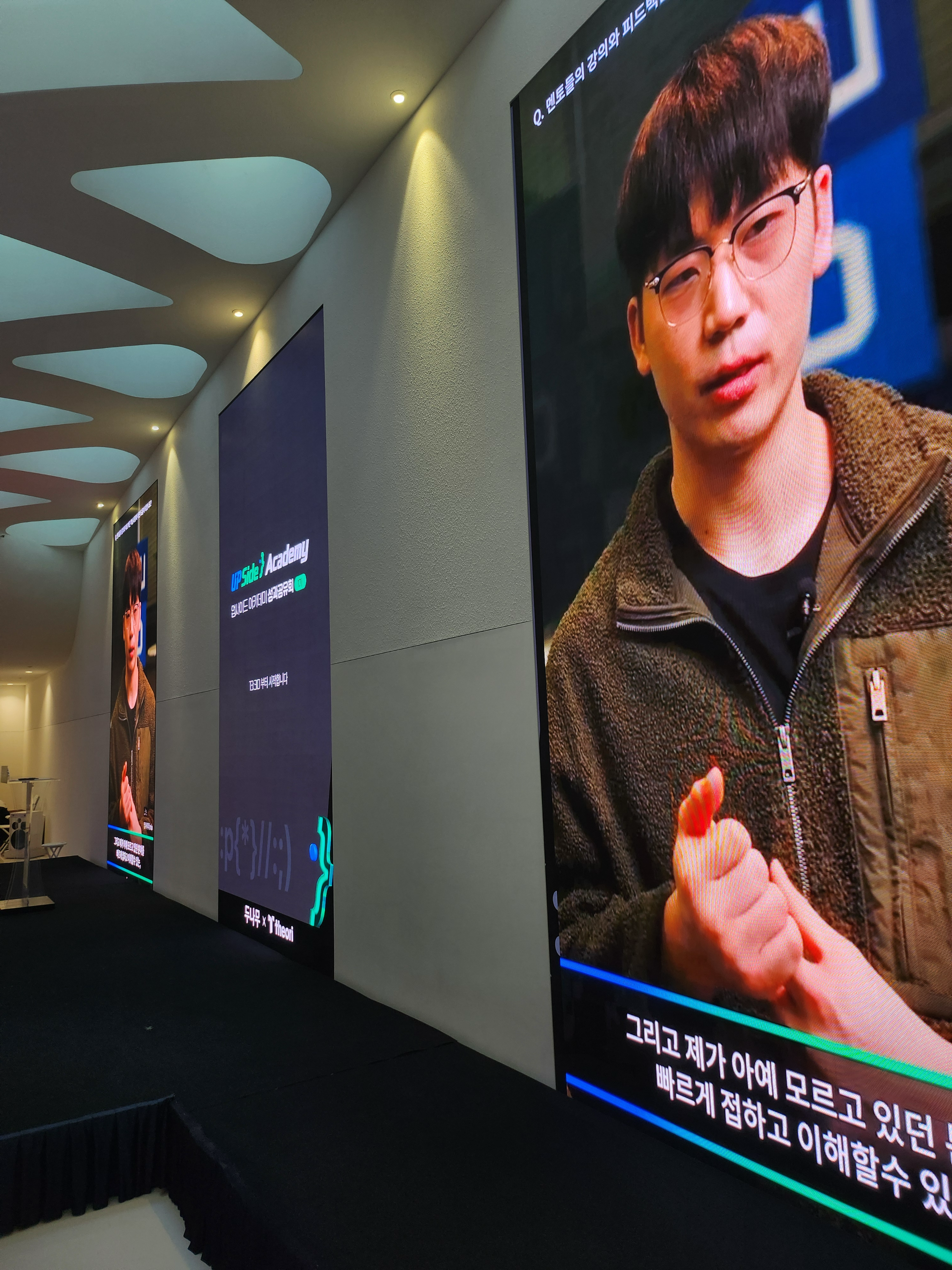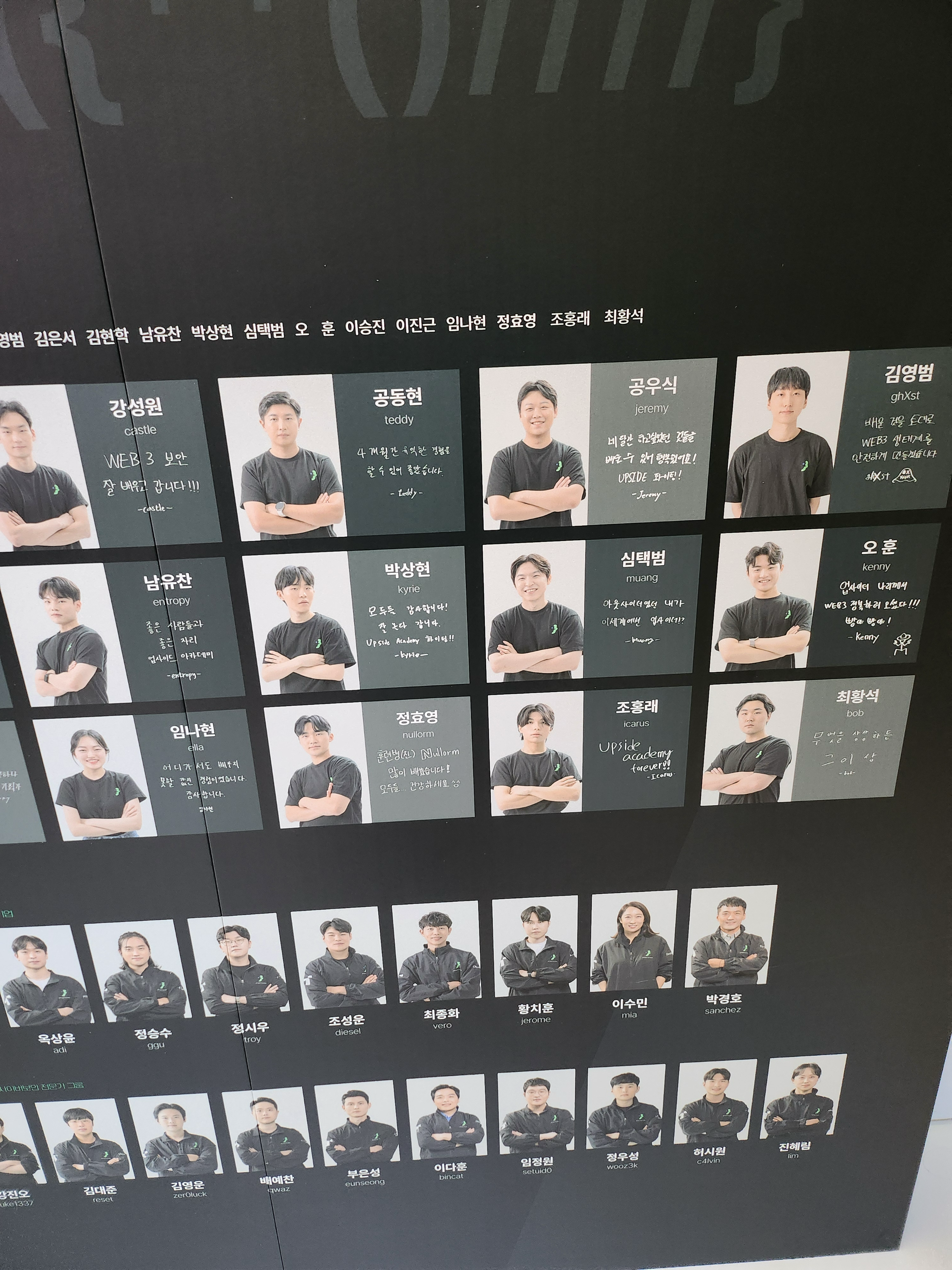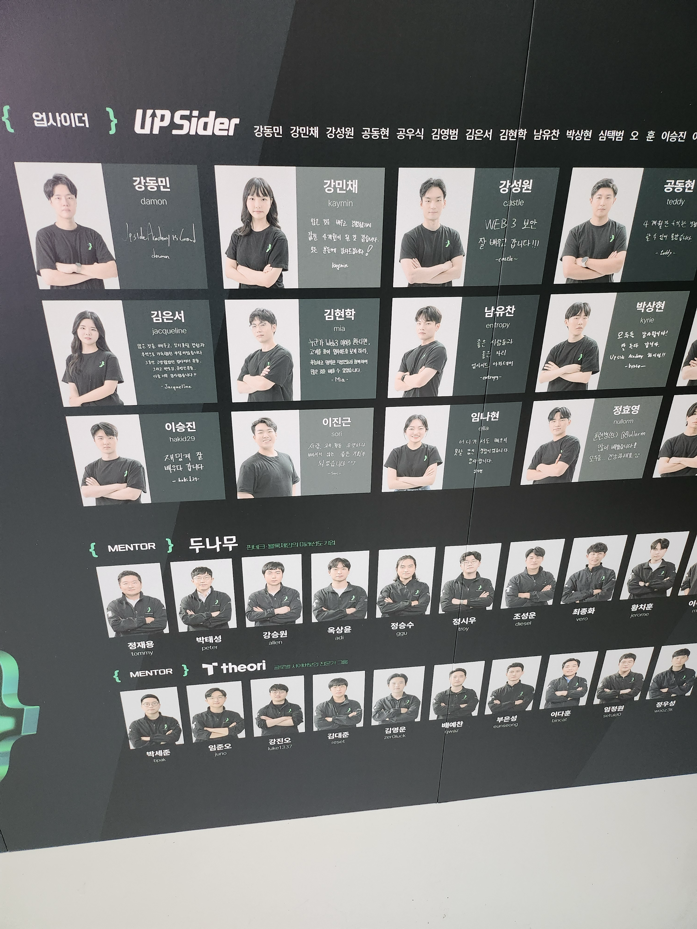 성과 공유회는 모나코스페이스 미디어홀에서 진행되었다. "이렇게까지 해주신다고?"라는 생각이 들 정도로 정말 기억에 길이 남을 만한 발표회였다. 들어오는 공간에도 1기 멤버들의 사진과 각자의 코멘트가 남아있다. 강의를 진행해주신 두나무/티오리 멘토님들의 반가운 얼굴도 함께 있었다. 언더독스 운영진 분들은요 ??