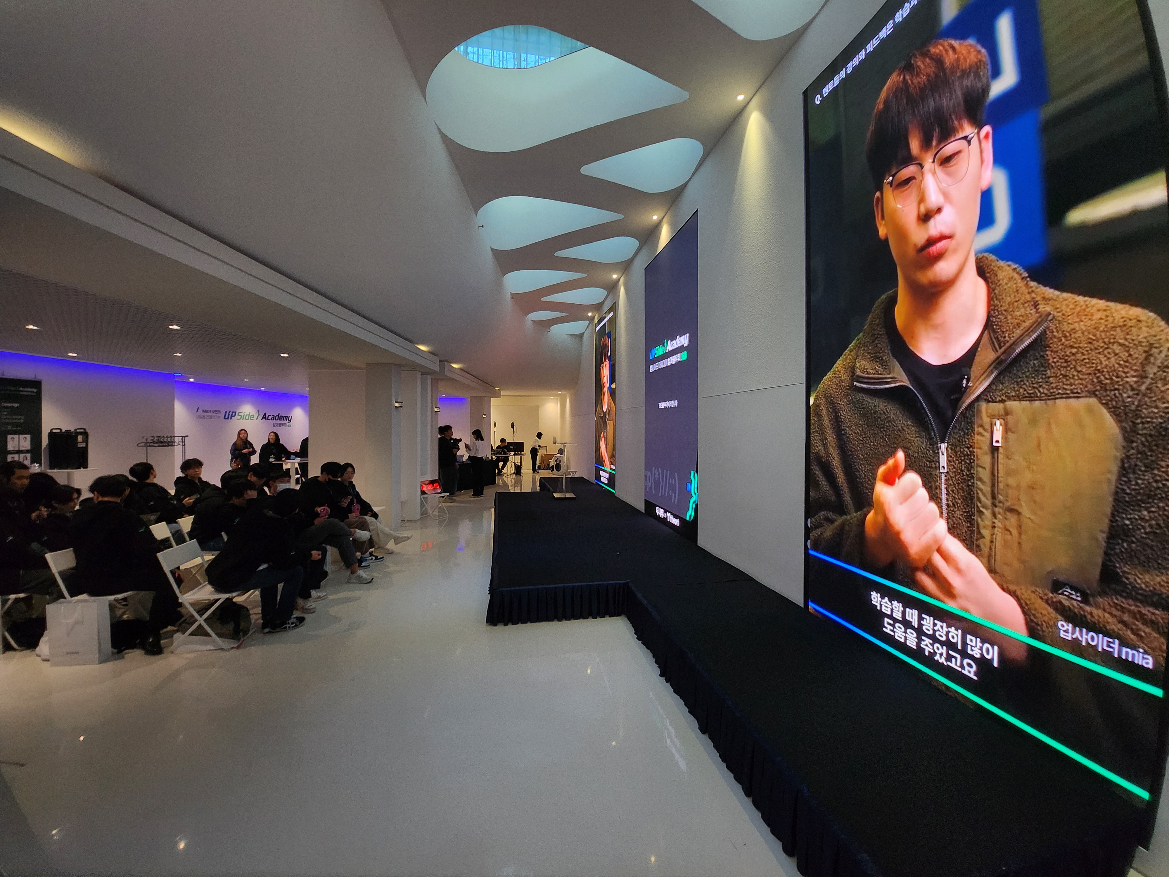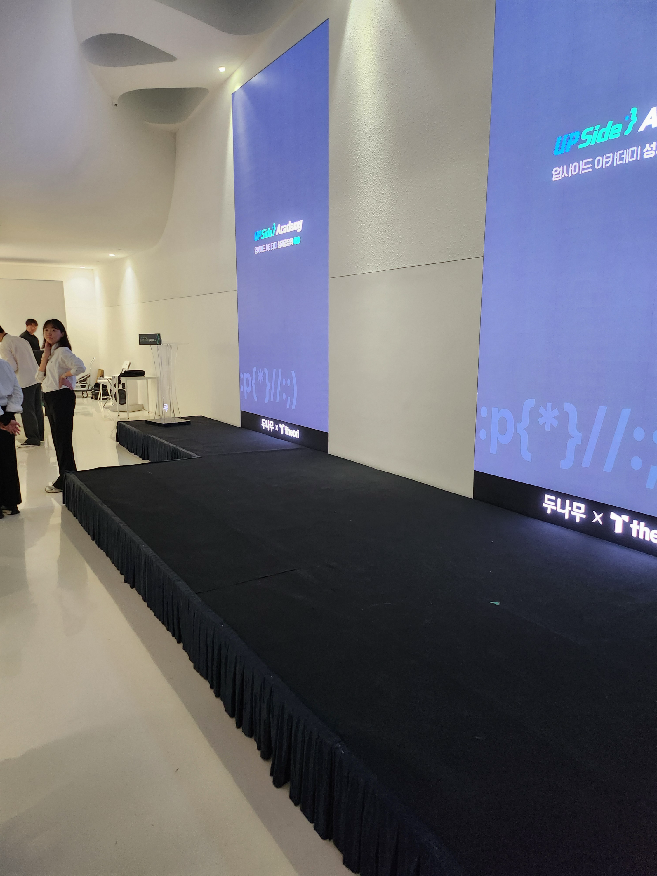 개인 인터뷰 영상이 업사이드 소개 영상으로 재생되고 있었다...!! 대기하는 동안 줄곧 재생되어서 낯뜨거웠지만, 나 이외에도 다양한 인원들의 영상 모두 포함되어서 그나마 덜 부끄러웠다. 이외에 오프닝 영상도 있었다. 4달의 처음과 마지막이 모두 담겨있고 그걸 또 엄청 역동적으로 잘 담아내셔서 감탄했는데, 녹화하지 못한 점이 아쉽다 :( 언젠가 업사이드 홍보 영상으로 풀리지 않을까?