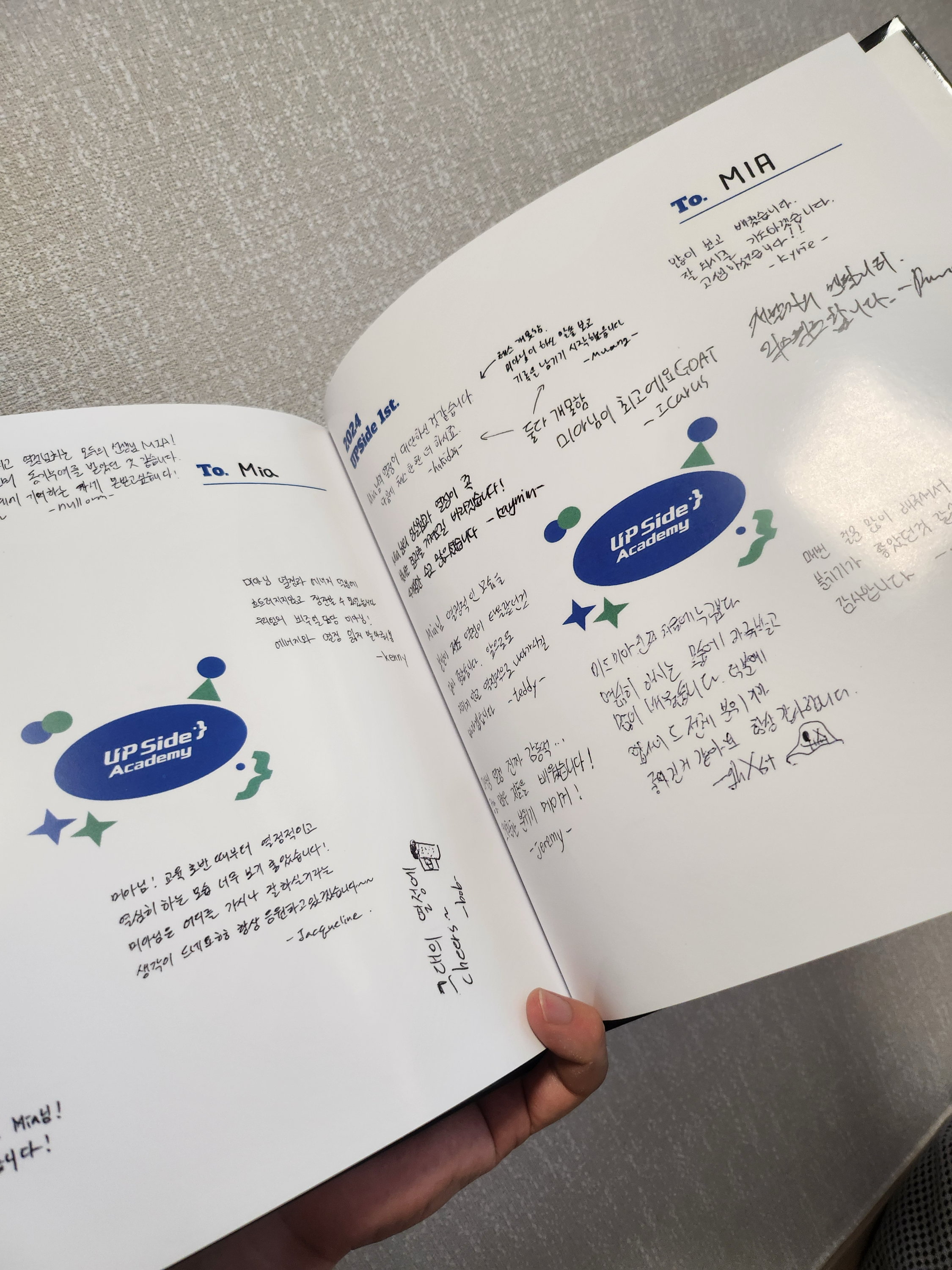 운영진 분들께 요청 받았을 때에는 한창 프로젝트 진행 중이라 뭔가 숙제처럼 느껴졌는데, 지금 이렇게 보니까 각자의 한 마디가 다 뜻깊고 마음이 전해지는 것 같아 참 쓰길 잘했다는 생각이 든다. 뿐만 아니라 선물로 받은 Snaps 사진첩에는 모두가 서로를 향해 작성한 롤링 페이퍼도 함께 남아있었다. 다른 사람들 것도 궁금한데... 아쉽지만 참아야겠지?