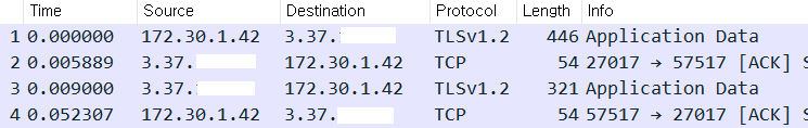 udp || tcp.port == 443 || tcp.port == 27017 를 필터로 잡고 분석하면 되겠지만 정보들이 암호화 되어 있어 볼 수 없다.