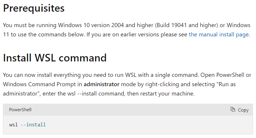 리눅스 호환성을 위한 하위 시스템 설치 Install WSL | Microsoft Learn