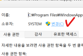 설정 변경 저장 이후부터는 SYSTEM 상에서 수정이 이루어졌으니, 소유자도 SYSTEM으로 변경되고,