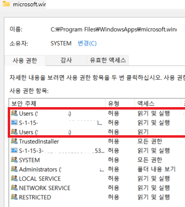 Win11로 업데이트 이후, 각 유저 인스턴스는 폴더 접근 권한이 부여되지 않도록 정책 기본값이 설정됨을 확인했다.