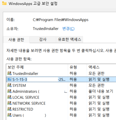 다른 접근 권한도 부모 개체와 폴더로부터 상속받음을 볼 수 있었다.